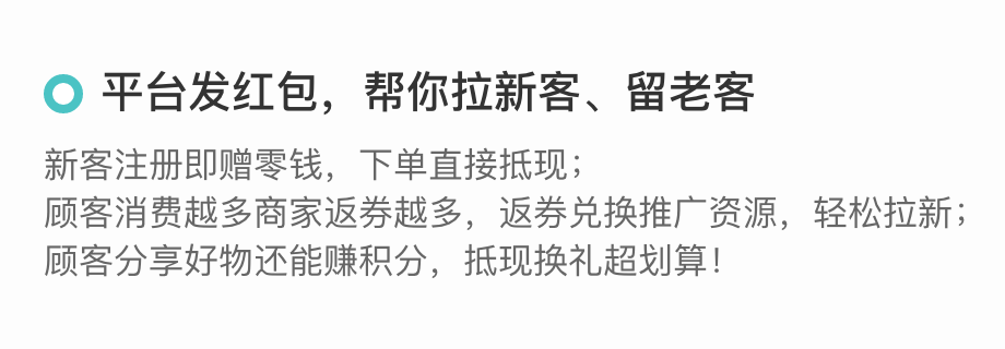 • 依托拼团裂变、会员储值、积分商城等8大营销工具提升30%客单价
